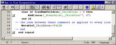 用于可以向【運(yùn)算】窗口中當(dāng)前光標(biāo)所在行插入折疊標(biāo)記,如圖3-23所示,單擊折疊標(biāo)記,可以將大段的代碼折疊起來,留下一個(gè)清晰的編碼環(huán)境。在右鍵彈出菜單中選擇clear collapse block菜單命令,就可以將當(dāng)前光標(biāo)所在行的折疊標(biāo)記清除。