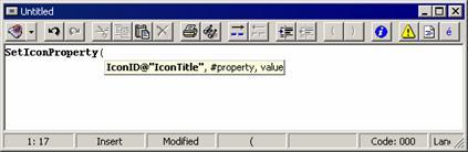 evalassign("result:=geticonproperty(iconid@/"icontitle/", #property)")。