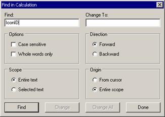 (9)【查找】按鈕:打開(kāi)【find in calculation】對(duì)話框,在當(dāng)前【運(yùn)算】窗口范圍內(nèi)查找或替換指定的字符串,如圖3-13所示,其中提供查找功能有如下幾點(diǎn)。