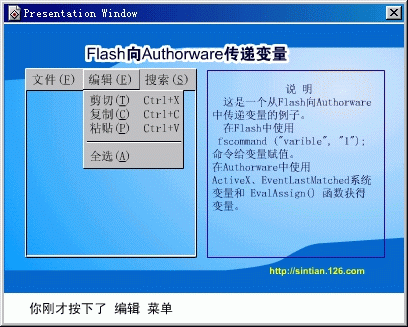 這些語句的意義是從flash文件中讀取變量“variable”的值。如果沒有按下菜單,那么不顯示任何內容。這些語句的詳細解釋請參考authorware相關文檔。