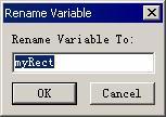 用于將自定義變量重新命名。單擊【rename】按鈕會(huì)出現(xiàn)一個(gè)【rename variable】對(duì)話框窗口,如圖3-3所示,在其中用戶可以為自定義變量輸入一個(gè)新的名稱。使用此功能將自定義變量改名之后,程序中所有用到此變量的地方都會(huì)自動(dòng)采用新的變量名,這樣設(shè)計(jì)人員就不必逐個(gè)打開設(shè)計(jì)圖標(biāo)進(jìn)行修改了。系統(tǒng)變量不允許重新命名。