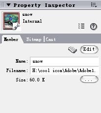 1 一般來講,使用standard import方式將會增加電影文件的大小,因此standard import方式適用于導入小個頭文件。而在link to external file方式下,director在電影文件中只存儲文件名和位置,這些信息我們可以在屬性面板中查看。如圖14