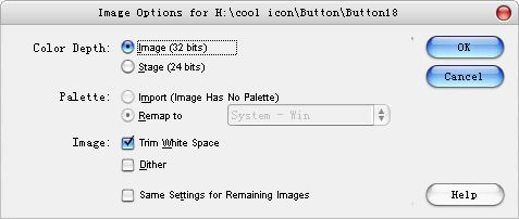 選擇stage選項使用目前舞臺的色彩深度,舞臺的色彩深度其實就是指電影的色彩深度,它是由顯示器的設置決定的。