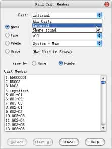 1 選擇edit > find > cast member命令,打開find cast member對話框。