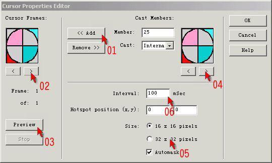 06 :對于多幀 cursor 序列,此處可調整序列的速率。(即光標動畫的頻率)