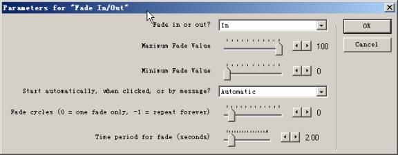 關于 fade in/out 行為菜單對話框的具體設置。如圖 , 從上向下依次是 :
