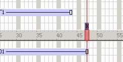 這時(shí)將 hold on current frame 行為拖到動(dòng)畫的最后一楨的腳本通道內(nèi),如圖: