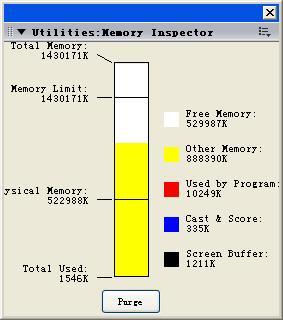 l memory inspector (內存檢視器)(僅在 windows 下可使用 )可以顯示演員與劇本所占用的內存、保留給舞臺使用的 screen buffer 、編輯中的電影可使用的內存大小以及目前使用的內存。使用內存檢視器可以了解目前內存的使用狀態,并分析電影所占用的內存部分,進而進行改進,提高作品的表現。如圖 2-20