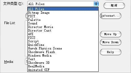 5 media 下拉列表用于設置導入文件的方式, director 提供了四種導入文件的方式:如圖 12