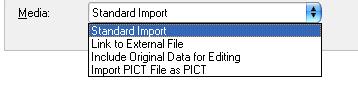 提示:即使是選擇了 link to external file 方式, 文本文件和 rtf 文件通常以 standard import 的方式 自動存儲在電影文件中。
