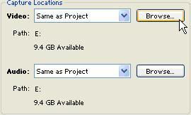 在capture location(采集地點)設(shè)置區(qū)中,video(視頻)是指將采集到的視頻文件保存到什么地方;audio(音頻)是指將采集到的音頻文件保存到什么地方。這里可以點擊