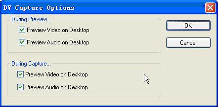 在dv capture option(dv采集選項)窗口有2個選項區(qū), during preview(當(dāng)預(yù)纜時)設(shè)置區(qū)和在during capture(當(dāng)采集時)設(shè)置區(qū)。它們的具體功能是:
