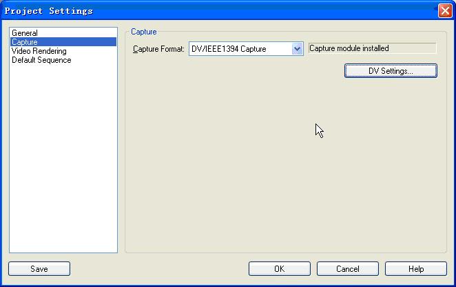 在使用視頻捕捉卡捕捉視頻素材時,需要在工程設(shè)定的時候選擇該視頻捕捉卡提供硬件支持的視頻壓縮格式。而通過ieee 1394捕捉視頻素材的時候則不用選擇硬件支持的視頻壓縮格式。