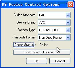 ◇ current device(當(dāng)前設(shè)備):用來顯示當(dāng)前連接設(shè)備的型號,圖2-13中顯示的dv型號是jvc gr-dvl-9600e,如果當(dāng)前連接的設(shè)備是sony的pd150攝象機,那么current device將會顯示為sony pd-150。