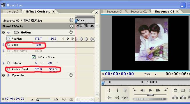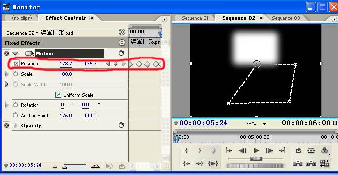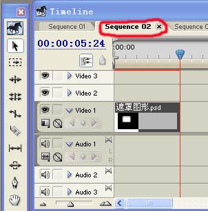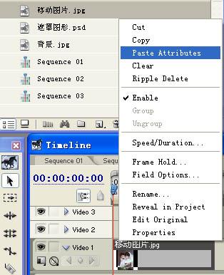 6.將欲隨遮罩圖形移動的圖片放入sequence 03的軌道1中,并粘貼sequence 02中的屬性。