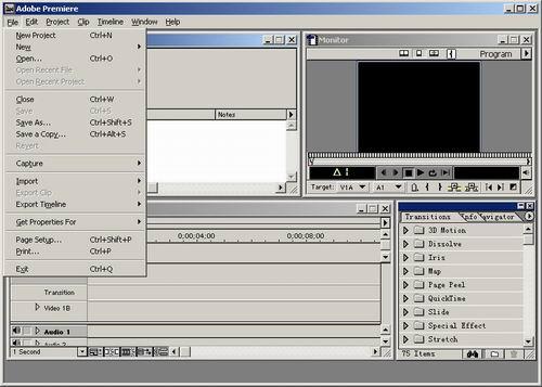 premiere6.0以project(項目)為基礎制作影片。項目記錄了用戶premiere6.0影片中所有的編輯信息,例如素材信息、編輯信息、效果信息等。在一般情況下,在premiere6.0中制作影片按以下流程進行工作。