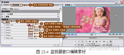 4、 編輯素材。將濾鏡添加至視頻編輯軌道中的素材上之后,對其做各項的編輯操作,如圖 23-4 所示。