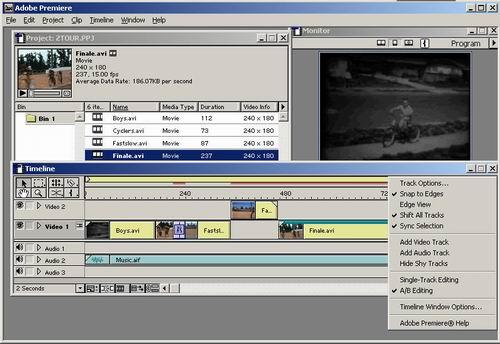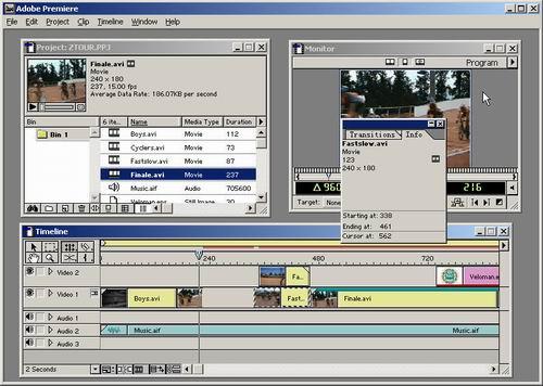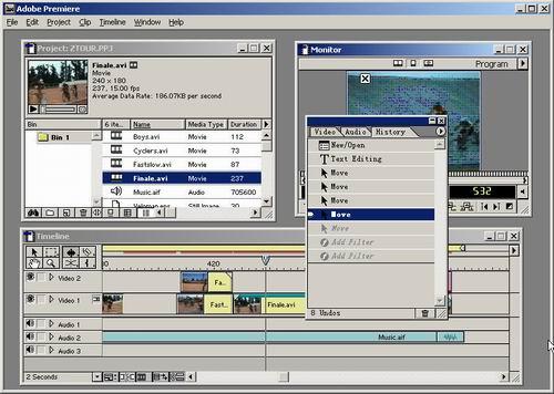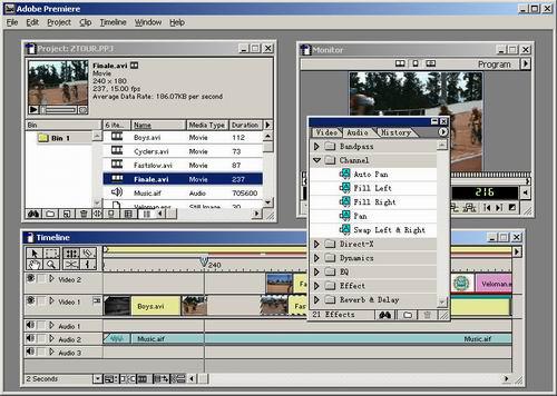 premier6.0工作區內主要包括了project(項目)窗口、timeline(時間線)窗口、monitor(監視器)窗口三個重要的工作窗口,影片的一些編輯工作都可以在這些窗口中完成。還有其它的一些輔助窗口。下面一一介紹這些窗口。