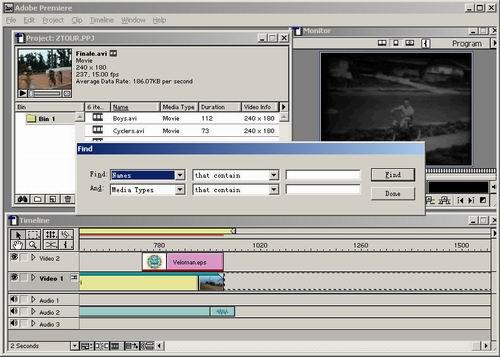 (5)當編輯一個影片有很多剪輯,可以通過“剪輯查找”快速找到這個剪輯,單擊工具欄中的第一個按鈕,彈出如圖4所示的對話框,在其中輸入查找條件,就可以很快地查到所需的剪輯。