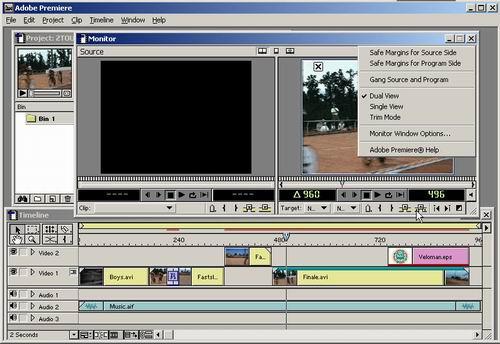 (5)單擊monitor窗口上方右邊的圖標或在前面的彈出菜單里選擇“time mode”命令,將monitor窗口切換為修剪窗口模式,如圖10所示。