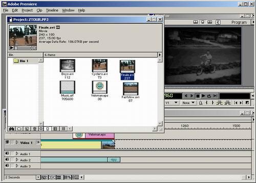 (1)如圖1所示,project窗口通常分為上部的preview(預覽區)、左下方的bin(剪輯箱)以及底部的工具欄三部分,其中預覽區用于在剪輯箱中被選中剪輯的快速瀏覽;剪輯箱用來管理所使用的各種剪輯;工具欄中給出與項目窗口管理和外觀相關的實用工具。