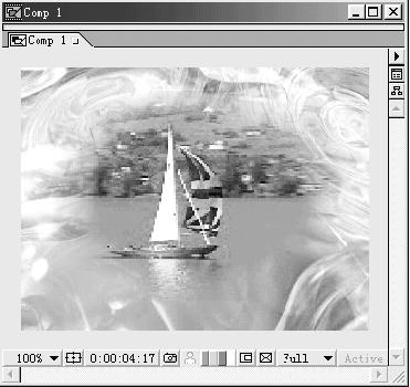 5.用“composition→preview→ram preview”進(jìn)行合成效果的預(yù)覽(圖4)。最后用“composition→make movie”生成“虛化畫中畫”視頻文件。