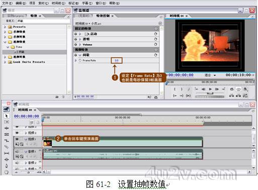 抽幀是比較常用的效果處理手段,一般用于娛樂節目和現場破案等片子當中,可以制作出具有空間停頓感的運動畫面。借助 premiere pro 1.5 的內置濾鏡可以很輕松的完成此效果。本節實際效果請欣賞隨書光盤中【源文件】︱【實例 61 】︱【抽幀效果】。