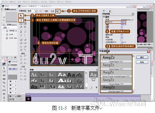 4、 編輯字幕。單擊鍵盤按鍵 f9 打開字幕工作窗口,編輯字幕并且分別保存文件,如圖 51-5 至圖 51-7 所示。