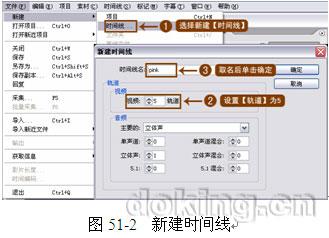 1、 新建項目。運行軟件,新建項目文件取名為【實例 51 】,在【裝載預置】中選擇【 dv-pal 】,保存項目源文件。