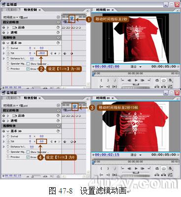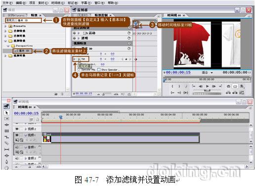 4、 添加濾鏡。找到并添加濾鏡【基本 3d 】,進行動畫設置,如圖 47-7 和圖 47-8 所示。