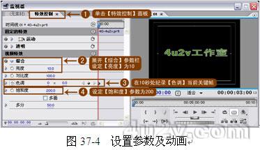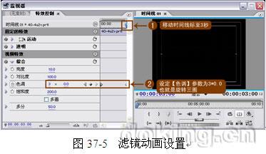 4、 設(shè)置動(dòng)畫。添加濾鏡后,在特效面板進(jìn)行動(dòng)畫設(shè)置,如圖 37-4 和圖 37-5 所示。