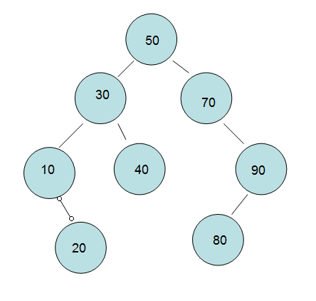 首先:20跟50比,發現20是老小,不得已,得要歸結到50的左子樹中去比較。