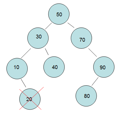《1》 刪除的是“葉節點20“,這種情況還是比較簡單的,刪除20不會破壞樹的結構。如圖: