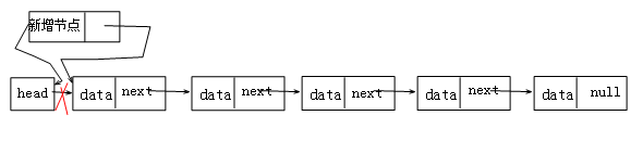 思想就是:① 將head的next指針給新增節點的next。②將整個新增節點給head的next。
