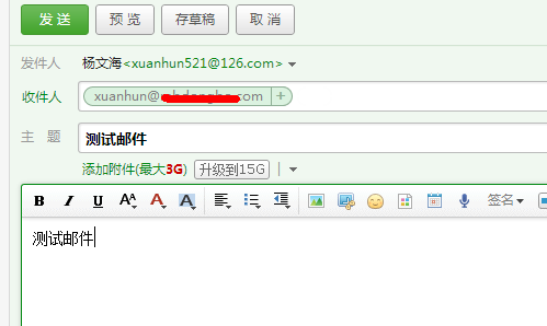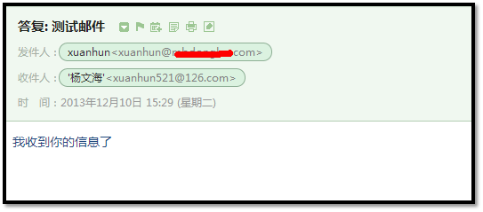 配置完成后,測試首發信,這里我先登錄126郵箱,給剛才創建的郵箱賬號發信,看是否能在OutLook中接收到,然后再回一封郵件,看是否能在126中接收到。