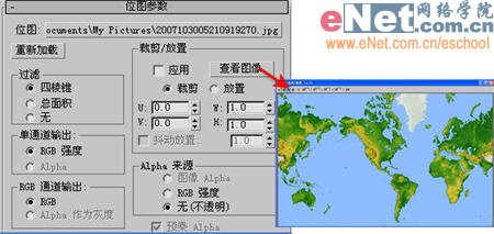 1、點擊工具欄上的“材質編輯器”按鈕,打開其面板,選擇第一個樣球,打開“貼圖”卷展欄,選中“反射”項,修改其值為50,并點擊其后的“none”按鈕,打開“材質/貼圖瀏覽器”面板,選擇“新建”單選項,然后在左邊列表中雙擊“位圖”貼圖,為其指定一圖片,如圖3所示。