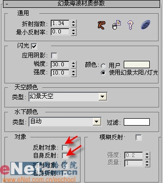 2、回到環境海浪材質參數卷展欄下,調整對象勾選,如圖4所示。并將材質賦予海面01。