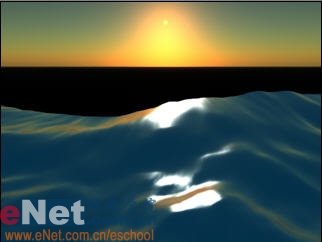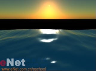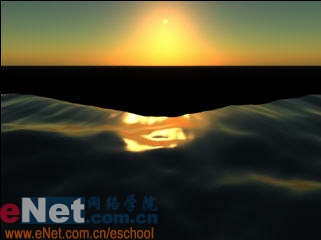 小提示:通過渲染,可以得到一個非常平靜的海面,同時也發現海面和遠處的地平線并沒有接壤,中間留有一黑色的地帶,顯得不協調。