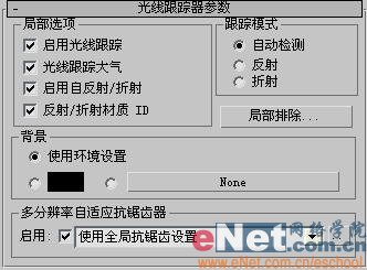 1、點擊“材質編輯器”按鈕,在前面設置過的樣球上,做進一步設置。打開“貼圖”卷展欄,選中“反射”,并調整其值為50,點擊后面none按鈕,在彈出的“材質/貼圖瀏覽器”窗口中雙擊“光線跟蹤”項,如圖12所示。