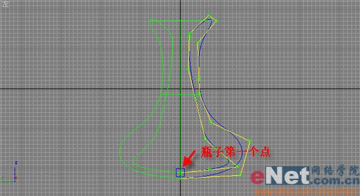 4、在“曲線cv”項選中的情況下,點擊“cv”卷展欄下的“延伸”按鈕,用鼠標選擇視圖中瓶子的第一點開始向下部拖動,為瓶體增加厚度,如圖5所示。