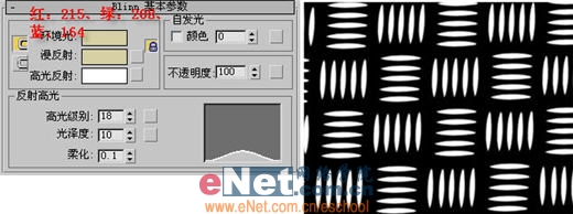 3、選擇第二個樣球,設置“明暗器基本參數”卷展欄下的漫反射顏色,反射高光、在“貼圖”卷展欄中勾選“凹凸”,并為其指定一圖片,如圖12所示。