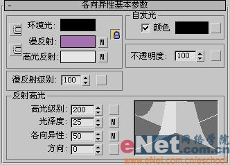 小提示:同樣的對于“高光反射”也指定給此圖,并適當調整反射高光參數,如圖6所示。