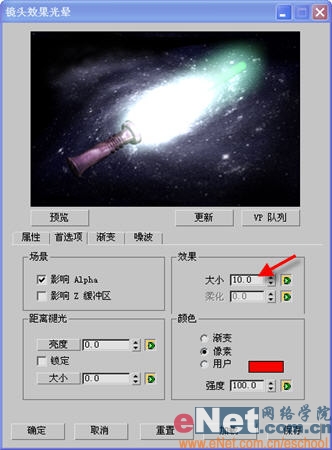 小提示:看上去發光太強了,可以通過點擊“首選項”選項夾,修改其大小為1,如圖12所示。