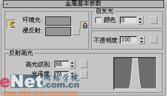 2、打開材質(zhì)編輯器中的“金屬基本參數(shù)”卷展欄,修改其參數(shù),如圖4所示。
