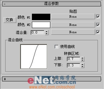 小提示:用“混合”貼圖可以更改材質的顏色,先將“顏色#1”指定為材質,再設置“顏色#2”的顏色,最后用混合值來調制合成。