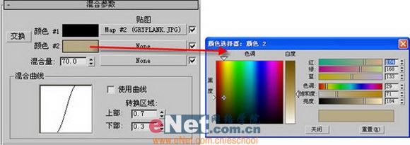 3、點擊“轉到父對象”按鈕,回到混合貼圖面板,修改“顏色#2”的顏色參數,如圖8所示。