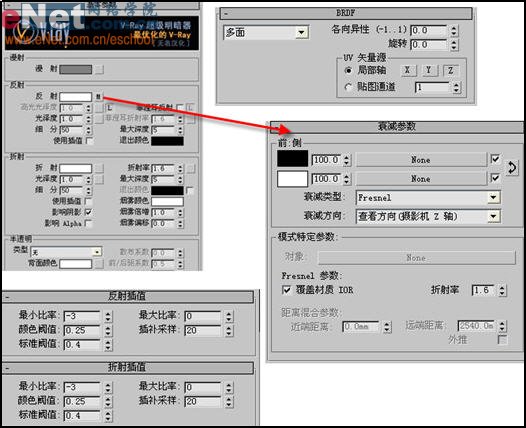 小提示:為反射添加一“衰減”貼圖,并定義其相關值。