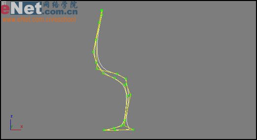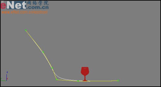 4、為場景增加一個桌面,用同樣的繪制nurbs曲線的方法,在左視圖中繪制一曲線curve03,協調它與酒杯的位置,如圖5所示。