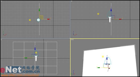 1、單擊“創建”命令面板中的“燈光”按鈕,在下拉列表中選擇“光度學”項,在創建面板中,點擊“自由點光源”按鈕,為場景增添一fpoint01,同樣的在場景中添加一平面plane01,調整它們相關位置,如圖9所示。