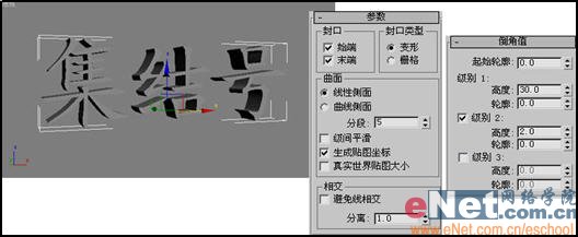 2、點擊“修改”命令面板,點擊“修改器列表”下拉框中的“倒角”項,打開其參數進行定義,如圖2所示。